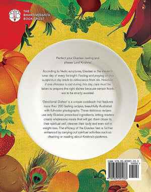 Perfect your Ekadasi fasting and please Lord Krishna   According to Vedic scriptures, Ekadasi is the eleventh lunar day of every fortnight. Fasting and praying on this auspicious day leads to deliverance from sin. However if one chooses to eat during this day, care must be taken to prepare the right dishes because certain foods are to be strictly avoided.   "Devotional Dishes" is a unique cookbook that features more than 260 fasting recipes, beautifully illustrated with full color photographs. These delicious recipes use only Ekadasi prescribed ingredients, letting readers create wholesome meals that will get them closer to their spiritual self, cleanse their body and even aid in weight loss. The Efficacy of the Ekadasi fast is further enhanced by carrying out spiritual activities such as chanting or reading about Krishna's pastimes.