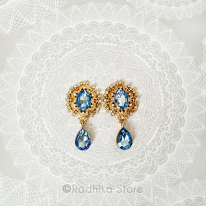 Krishna Blue Dangling Teardrop earrings with Flat back (Apply with tickey tack for Larger Deities. Ideas for Use - Can also put in turbans or as a pendant or front tika jewel for Srimati Radharani.(also use tickey tack) You can also unhinge them at the teardrop.