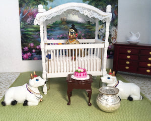 Chairs, rug and other items sold separately. (2 inch Laddu Gopal fits perfectly in this bed) (See in Deity section)
