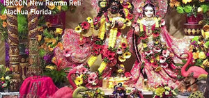 These white birds look very similar to the white birds that follow around the cows of Vrindavan. Raman Reti ISKCON Temple of Florida use Pink Flamingos on their Altar.