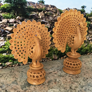 Cute, Hand Carved Dancing Govardhana Peacock, (This Price For One) With a Baby Peacock Inside. There is no seam. The baby peacock was carved from the outside.