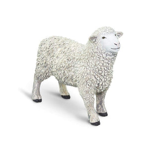 Size and Color:3 ¼ inches long and 3 inches high. This sheep features a traditional white wool coat with black hooves.