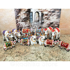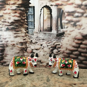 Wishful filling Surabhi cows, help bring the mood of Vrindavan to your home altar. Krishna would play His flute to call the cows of Vrindavan from the pasturing grounds. He would call each of them by their names. Sometimes a cow would not come, so Krishna would have to personally go to catch her.