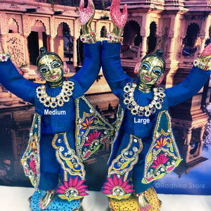 From Vrindavan - Beautiful, Good Quality Rhinestones Deity Necklace. Please see pictures for the sizes. Choose your size accordingly. (Please do measurements to make sure you get the size you need.) The string is interchangeable. You can put any color string you like. Some devotees like to use a metallic string.