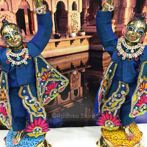 From Vrindavan - Beautiful, Good Quality Rhinestones Deity Necklace. Please see pictures for the sizes. Choose your size accordingly. (Please do measurements to make sure you get the size you need.) The string is interchangeable. You can put any color string you like. Some devotees like to use a metallic string.