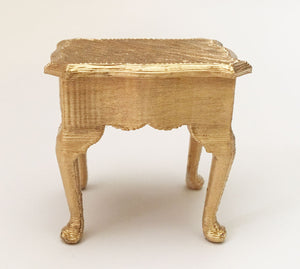 This table is plastic and painted gold. It can be used as a night stand, next to Their bed or next to a throne, or as a miniature eating table. A table can be used for meditation when making your bhoga offerings to your Lordships..