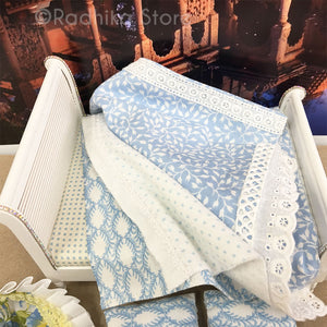 Soft pure cotton sheets with soft trims. Comes with sheeted matress, Top sheet, Double sided Comforter, bed cover(Same design). And two Pillows.