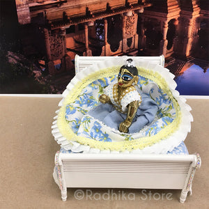 In the temples, generally they offer a bed to the Lord by meditation. Mentally you place Them in the bed and say prayers. This bed can be for any size Deities if you put Their Lordships to rest by meditation.