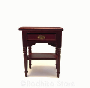This pedestal side table with Mahogany finish can be used as a night stand, next to Their bed or next to a throne, or as a miniature eating table. A table can be used for meditation when making your bhoga offerings to your Lordships..