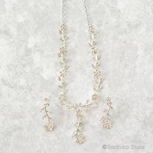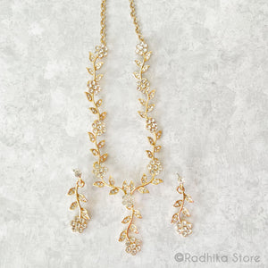 Sweet, sparkling Vrindavan Flower Vine with rhinestone crystals necklace and earring set.