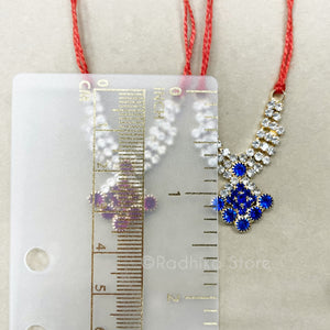 From Vrindavan - Beautiful, Good Quality Tiny Rhinestones Deity Necklace. With Gold color metal (Back). Faux Diamonds with Faux Rubies or Clear Diamonds, Tiny necklace, for tiny Deities. (from 4" to 9" inch Deities)