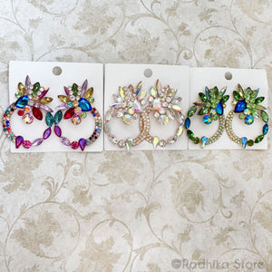 Vibrant, good quality rhinestone earrings with posts. for Large Deities or put in Turbans or for Lord Jagannath bangles Or use as effulgences behind your Deities. Measure to make your assessments. See Measurement photo.