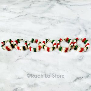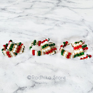 Made in Vrindavan - Set of Two Emerald Ruby Pearl Faux Beads (Triple bangle look) Deity bangles or armlet ( Used higher in the arm above the elbow. (one pair).