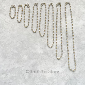 Made in Vrindavan. Extra Tiny Silver link Tulsi Necklace with Sterling Silver End Caps.