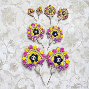 Hand-made in Vrindavan. Embroidery Turban Pins - Set of 2 Turban pins. With high-quality rhinestones and crystals.