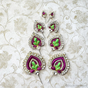 Hand-made in Vrindavan. Embroidery Turban Pins - Set of 2 Turban pins. With high-quality rhinestones and crystals.