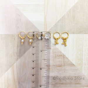 From Vrindavan- Little Hoop earrings, (Faux Gold and pearls) May also be used as bangles for very small Deities. (3 to 6 inches tall). May also be used for a nose ring for larger deities 12 inches and up..(apply with Tickey Tack. (For Deity Jewelry Application) See in the Miscellaneous section in Deity Jewelry.