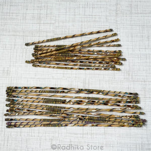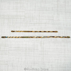 Made in Vrindavan. They can also be used as an armrest or staff. They may not fit in the tiny hold between Lord Krishnas fingers.(They are slightly bigger around than the metal flutes.) If it does not fit, you may have to set with tickey-tack.