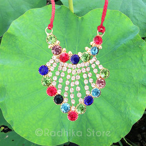 From Vrindavan - Beautiful, Good Quality Rhinestones Deity Necklace. Please see pictures for the sizes. Choose your size accordingly. (Please do measurements to make sure you get the size you need.)