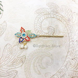 Silver flute white diamond rhinestones 3 "Inch (Not depicted (Same as the other flute design with silver color metal and all clear stones. (Same pearls)