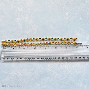 This beautiful piece can be used as a necklace for Deities 7" inches and up and can be used a tika or nose chain For Sri Mati Radha Rani Lady Subadra, Sita etc,. or anklet or bracelet for large Temple Deities.