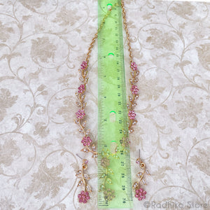 Sweet, sparkling Vrindavan Flower Vine with rhinestone crystals necklace and earring set. With gold metal. Please see the photo for the size.
