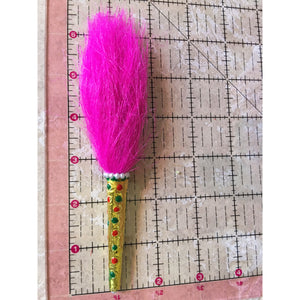 Hand made in Vrindavan. Bright Red Saffron Deity Camaras For Deiteies. Gold Color Metal Handle and fine cotton. Put in Srimati Radharanie's left hand or hand Let Laddu Gopal play with them. Or put them on the altar.