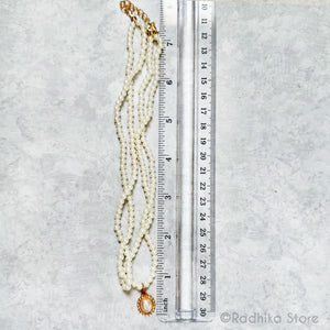 Good quality Faux Pearls. (Creamy means almost white just nearly off white).Th-is Lovely necklace works well for medium to large size Deities. Make them shorter by using the clasp, and make them longer by using the extra chain