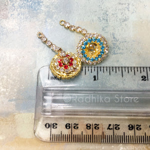 Beautiful Rhinestone Deity Kartals. Put in your Gaura Nitai's hands, or on your altar. Use as a necklace pendant for yourself, or hang on a string from your rear view mirror as emblem or reminder of Kirtan. Makes a great gift for those who Love Kirtan.