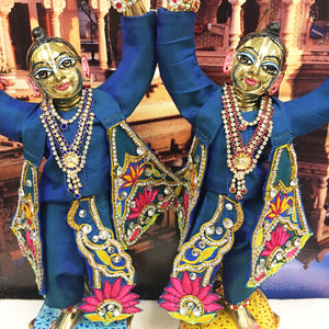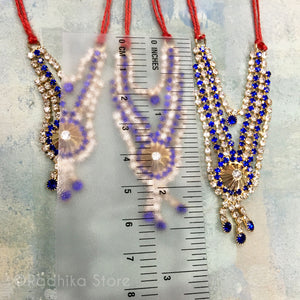 From Vrindavan - Beautiful, Good Quality Rhinestones Deity Necklace. Please see pictures for the sizes. Choose your size accordingly. (Please do measurements to make sure you get the size you need.) The string is interchangeable. You can put any color string you like. Some devotees like to use a metallic string.