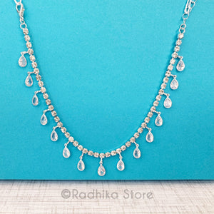 Tiny Crystal Tear Drops. This sweet, versatile necklace is approx. 9" inches end to end, plus the extra chain link. You can easily cut off at any point you wish and use for smaller necklaces, bangles or anklets, Turban pieces, etc. This can be used as a Tika for larger Deities or as a turban piece.