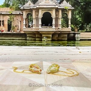 Tiny Deity Mridngas From Vrindavan - Gold metal and sparkling rhinestones -