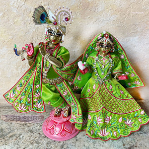 Note: This necklace is depicted on 8 1/2" Krishna Deity (Floor to top of head) (That one is the Multi color. This listing is ruby red and diamond color stones.