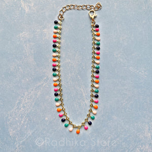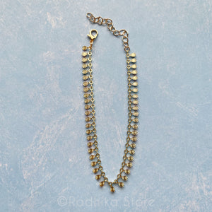 Tiny Teardrop Design Deity Necklace. Good Quality with gold color metal. This necklace has a very nice reverse side that can also be used. 8" inch plus extra chain link to extend. See measurement photos.
