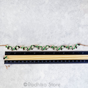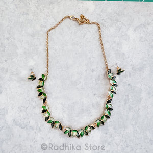 Beautiful Tulsi Leaf Design necklace with Lack (Lacker) A popular type of Jewelry used in India. (Paint on metal). On gold color metal. For Medium to larger Deities.