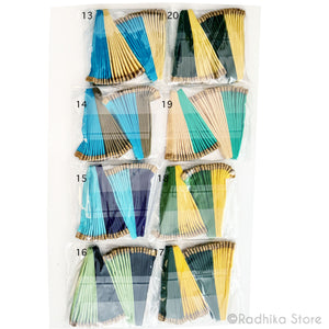 Hand-made in Vrindavan. -2 Colors Side by sideSilk Fabric, with Gold Jari trim Turban Fans. Temple quality. Looks like two fans in one, though the colors are sewn together