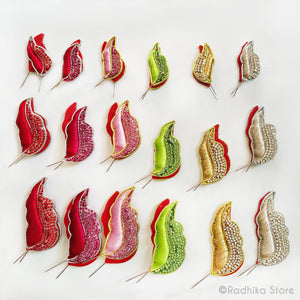 Hand-made in Vrindavan. Embroidery Turban Pins - Set of 2 Turban pins.  With high-quality rhinestones and crystals. THIS ONE IS SILVER COLOR. - The Last one in the photo.