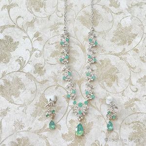 Vrindavan Dew Drops, rhinestone crystals necklace and earring set. Please see the measurement photo for the size.