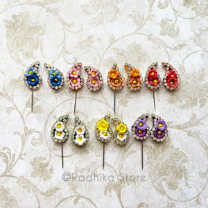 Vrindavan Flower-Tiny Turban Pin With Chandrika - Set of 2 - Choose Color