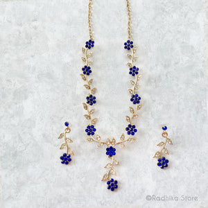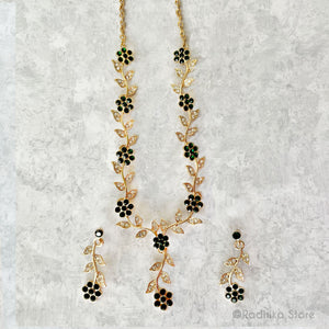 Sweet, sparkling Vrindavan Flower Vine with rhinestone crystals necklace and earring set.