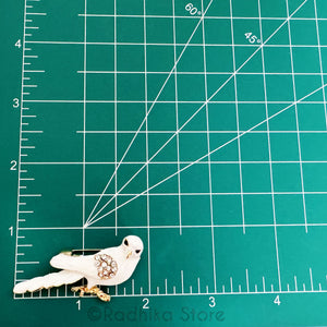 Cute White bird with Rhinestones and Lacquer on Gold Color metal.
