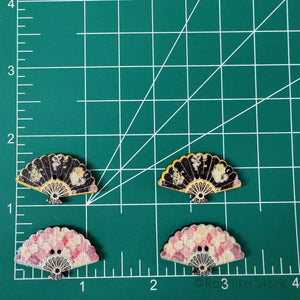 Elegant Fan Pins with Rhinestones Lacquer and a Lovely Pearl or Jade (Faux). Gold Color metal.