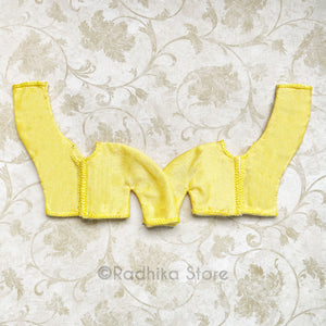 For those who Have Deities One arm up and one arm Down. If your Deiteis are at all chubby, then go up one size. (That means not the standard thin Deities. If they are wood or marble, they may need to go up one size, otherwise, the Kurtas will be too tight. They are very fitted kurtas.