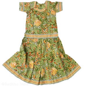 Made In Vrindavan - Comfortable, soft lightweight, Cotton Screen Print fabric  Block Print Girls Gopi Skirt and Kurti set