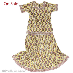 Made In Vrindavan - Comfortable, soft lightweight, Cotton Screen Print fabric. Girls Gopi Skirt and Kurti set.