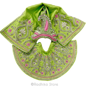 Glistening Vrinda Kund - Green - Silk - Jagannath Baladeva Subhadra Deity Outfit