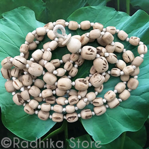 Pure Tulsi Japa Japa Beads - Hang 37 to 38" inches Long (Approx 75 inches around plus head bead) Large beads. The new batch is a little bigger than the photo and more round and not the dark spots. Very nice quality.