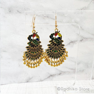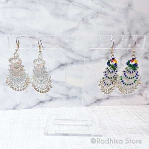 Beautiful, Little Dancing Peacock Jhumka, earrings. Choose Faux Gold color or Silver with Painted Lacquer. Choose Lacquer color. Earring hooks. Light weight Lots of movement