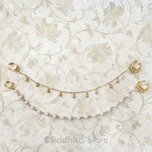 Choose Pearl or Gold (Faux). Nose Ring and Chain, with ear cuff. (Can be removed if needed.