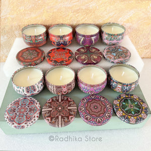 Set of 8 - Beautiful Decorative, Miniature Soy Candle in Tins. Lovely Scented. (different flavors)